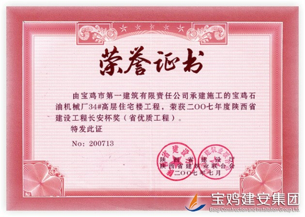 Chang’an Cup Award of High Rise Residential Building Project of Petroleum Machinery Factory