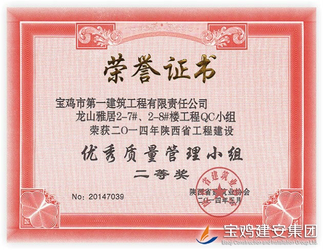 QC Team Award of Longshan Residential Project