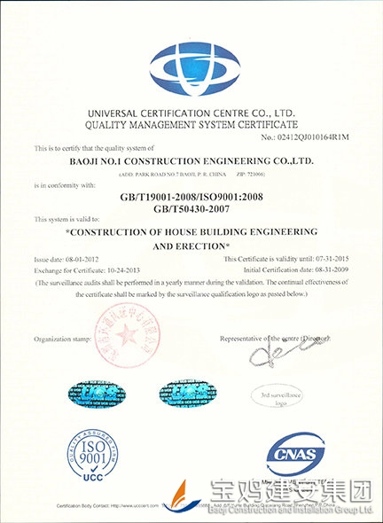 Certificate of Conformity to Quality Management System Certification