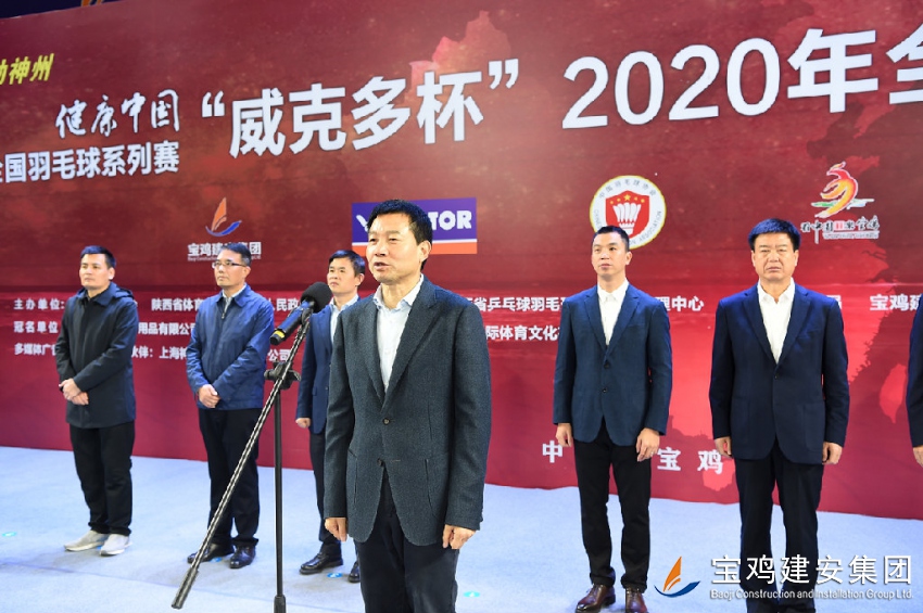 上午9時(shí),副省長(zhǎng)、中共寶雞市委書(shū)記徐啟方宣布:2020年“威克多杯”全國(guó)羽毛球錦標(biāo)賽開(kāi)幕。