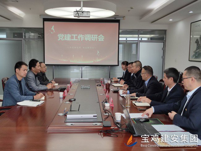 10月19日上午,市住建局黨組專職副書記馬平科,人教科科長李泉、副科長陳發(fā)平一行前往寶雞建安集團(tuán)公司調(diào)研指導(dǎo)主題教育開展及“四強(qiáng)”非公企業(yè)黨組織建設(shè)等情況。集團(tuán)公司黨委書記、董事長、總經(jīng)理景常榮,黨委副書記胥永寧,黨委副書記、紀(jì)委書記侯少偉和部分黨委委員及基層黨支部書記參加了調(diào)研活動。