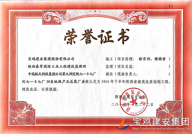 七一0七廠省優(yōu)質(zhì)結(jié)構(gòu)工程