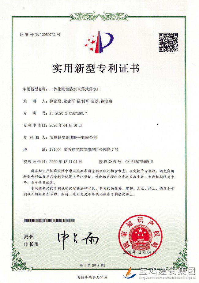 一體化剛性防水直落式落水口實(shí)用新型專利